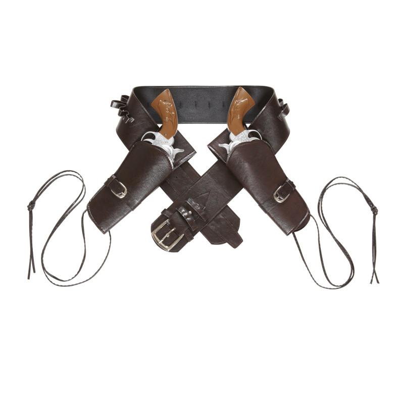 POPIS ZBOŽÍ autentický kovbojský opasek Autentický kovbojský opasek s 2 pouzdry na kolt, hnědý, se šňůrkami k přivázání pouzder ke stehnu,vel. 96-110, šířka pásku je 8 cm. Materiál: 100% PU