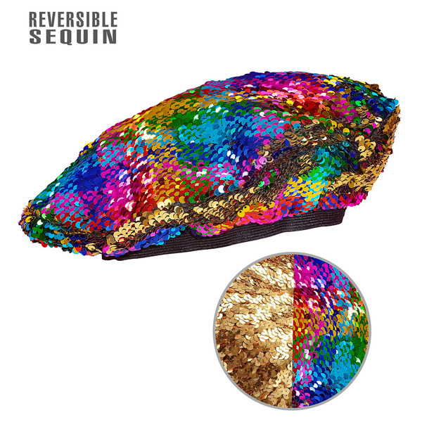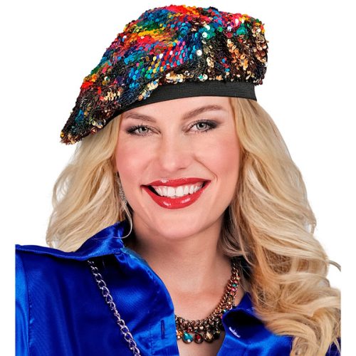 POPIS ZBOŽÍ baret flitrový multicolor Baret je pokrytý duhovými flitry, které mění barvu. Čepice je vyrobena z pružného materiálu. Je všitá další gumička. Jedna velikost padne všem.