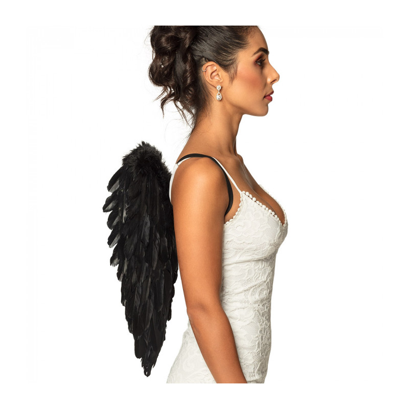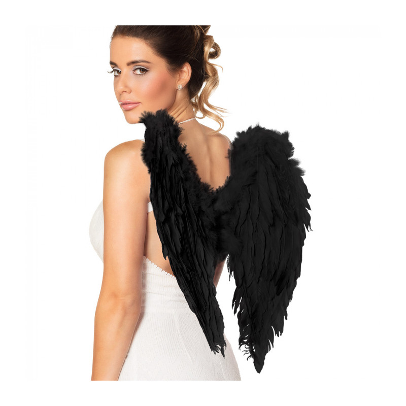 POPIS ZBOŽÍ černá péřová křídla Péřová křídla, halloweenská.Černá křídla jsou doplňkem např.ke kostýmu padlého anděla.Rozměr: 50 x 50 cmMateriál: 60% papír, 15% peří, 13% železo, 12% polyester