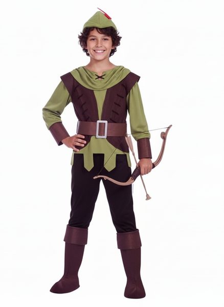 POPIS ZBOŽÍ chlapecký kostým ochránce lesa 134 vel 134 Sada obsahuje: - tričko, - kalhoty, - čelenku, - návleky na boty. Barvy: hnědá, zelená. Luk není součástí
