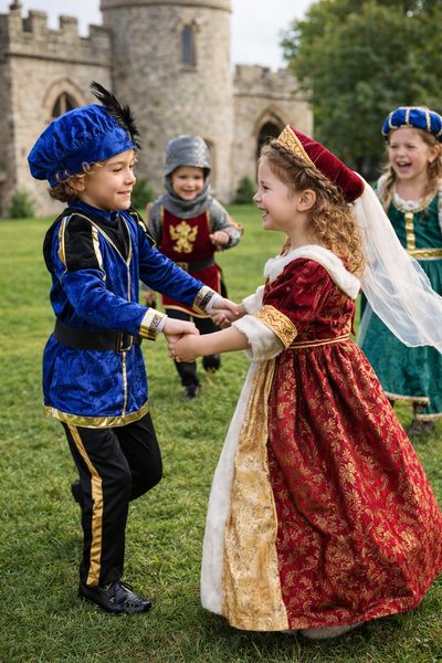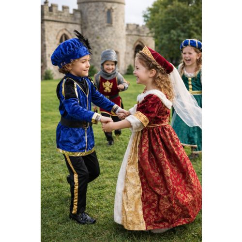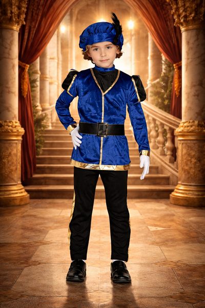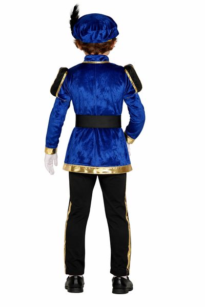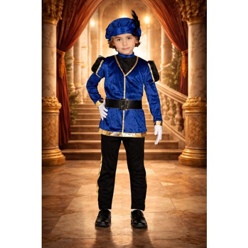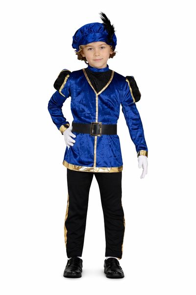 Sada obsahuje: halenku, kalhoty, klobouk. Oblečení je černo-modré. Zdobené zlatými stuhami. Halenka a klobouk jsou vyrobeny z materiálu podobného sametu. Kalhoty jsou vyrobeny z pružného materiálu s elastickým pasem.