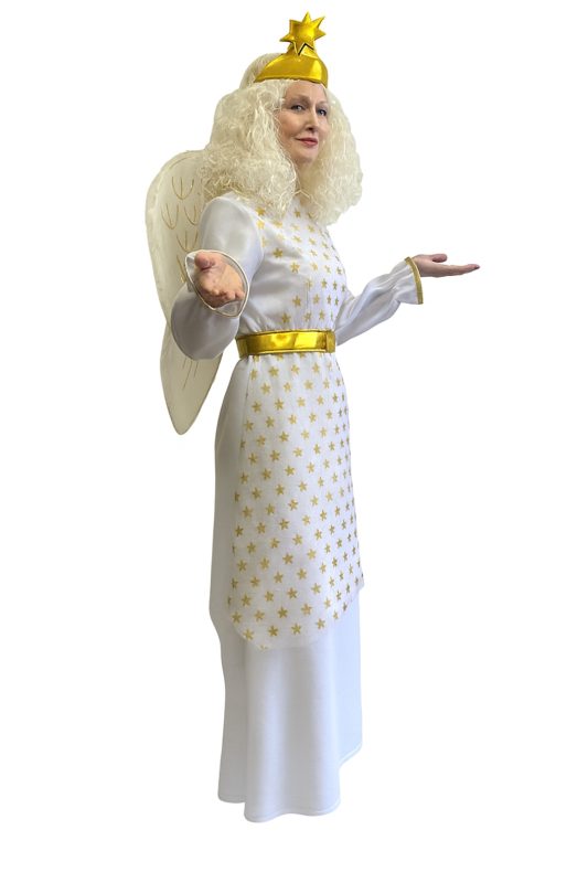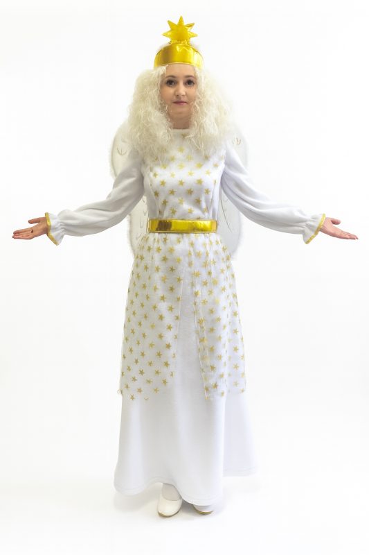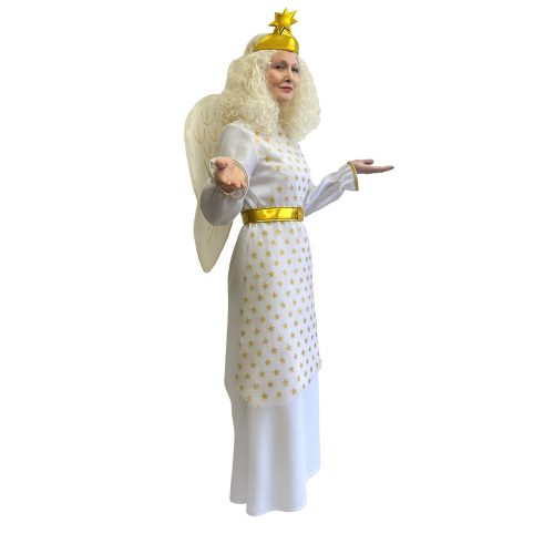 POPIS ZBOŽÍ dámský kostým anděl fleece Andělské šaty z fleecu se zdobením z bílého tylu se zlatými hvězdičkami je ideální do chladného počasí Materiál: 100% polyester