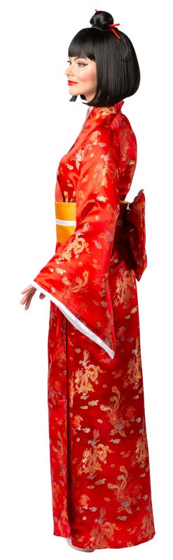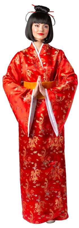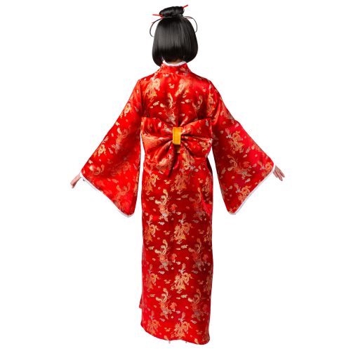 červené kimono s páskem a mašlí