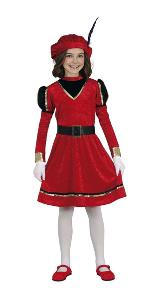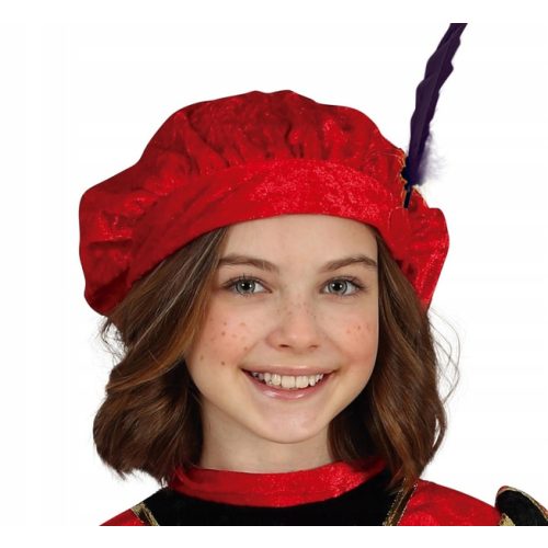 POPIS ZBOŽÍ dívčí kostým červený páže 128 Sada obsahuje: šaty, klobouk. Červené šaty s dlouhým rukávem. Červený klobouk s ozdobným černým peřím.Velikost 128 Materiál: 100% polyester.
