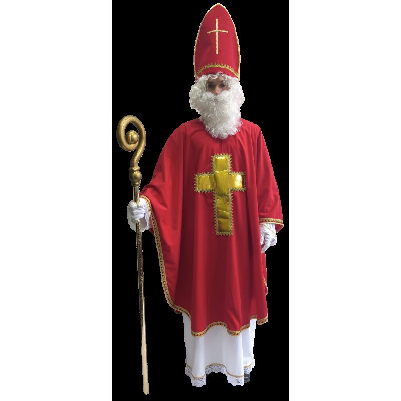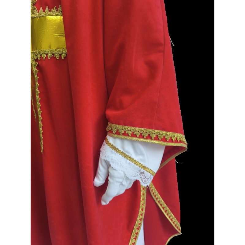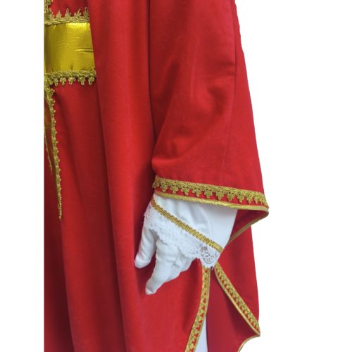 Mikulášský kostým skládající se z velké peleríny se zlatým lemováním,