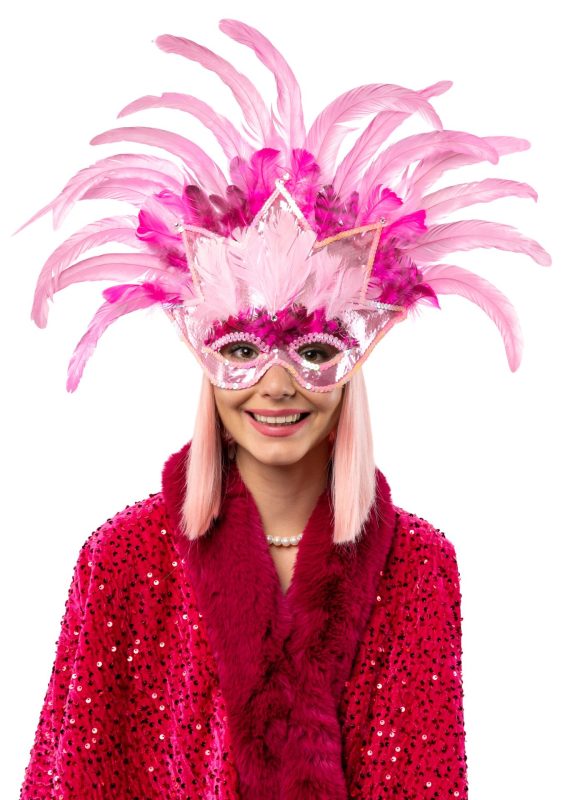 velká růžová maska s peřím