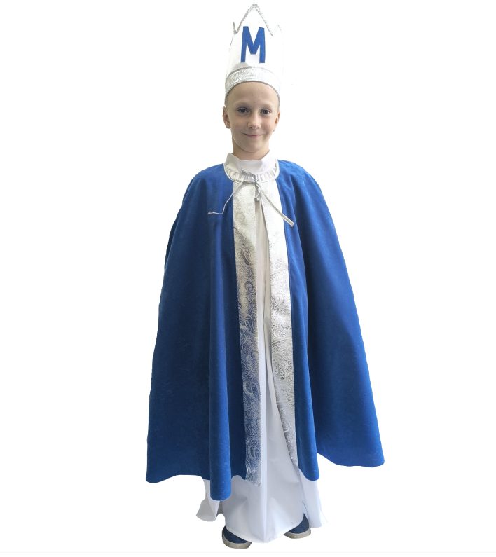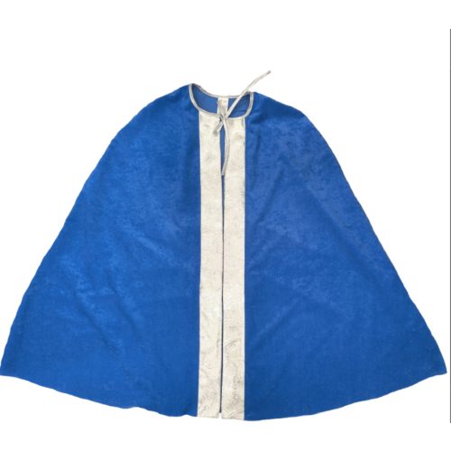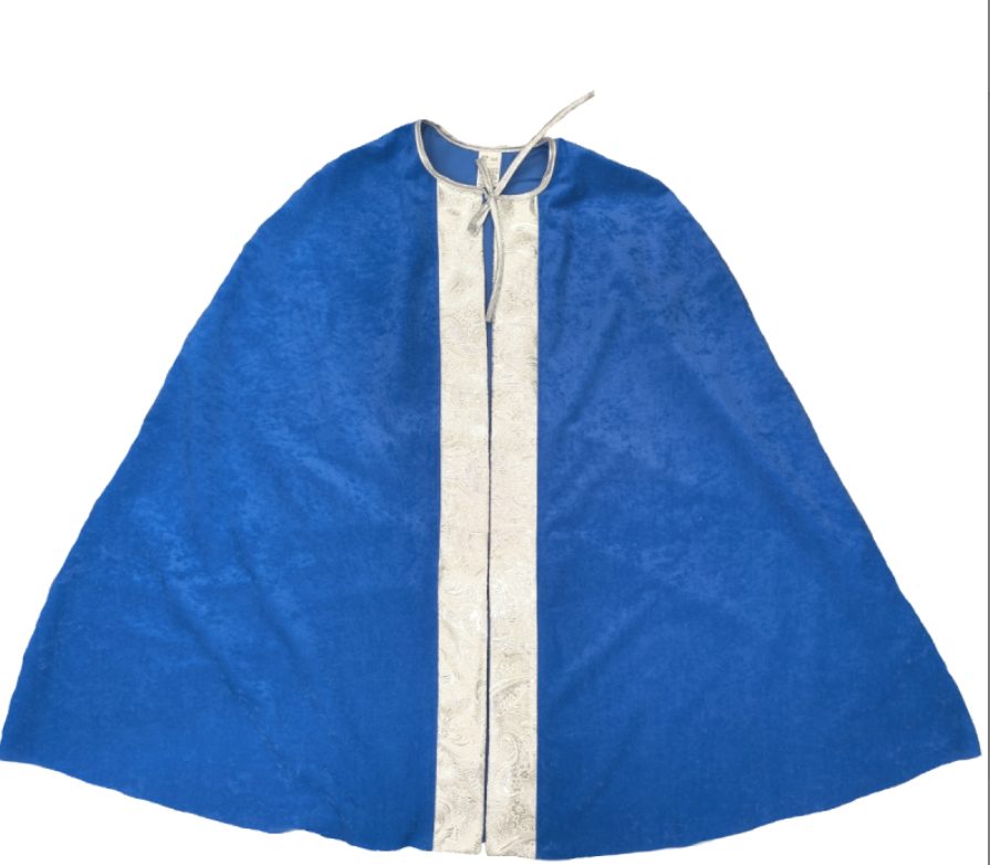 POPIS ZBOŽÍ chlapecký modrý plášť Melichar tradiční plášť na Tři krále pro Melichara v modré barvě lemovaný na předním díle stříbrným brokátem, který dodává plášti sváteční atmosféru Materiál: 100% polyester