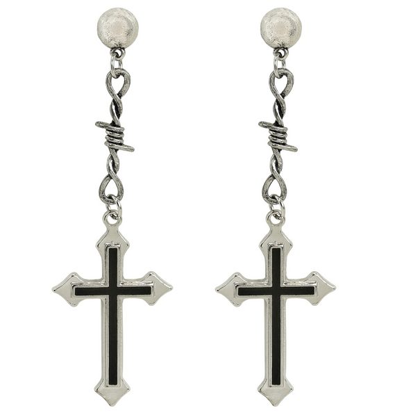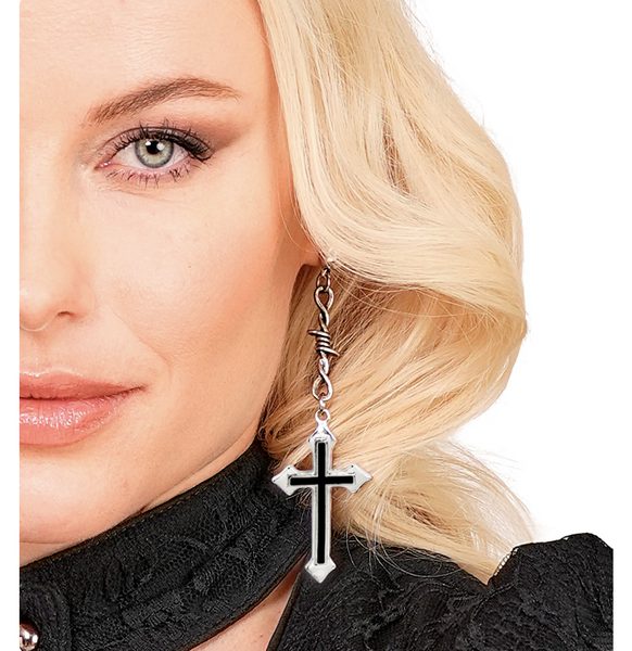 POPIS ZBOŽÍ náušnice kříž Gotické náušnice s křížkem. Barva: stříbrná a černá. Velikost náušnice: cca 9,5 x 3 cm. Ideální na Halloween