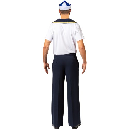 POPIS ZBOŽÍ pánské námořnické kalhoty Tyto tmavě modré rozšířené pánské kalhoty se díky vysokému pasupohodlně nosí a vytvářejí skvělou siluetu. Tmavě modré kalhoty jsou zakončeny šesti ozdobnými zlatými knoflíky.