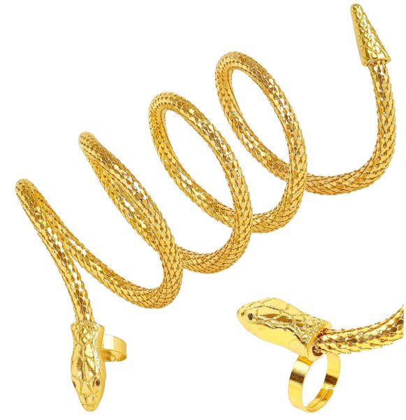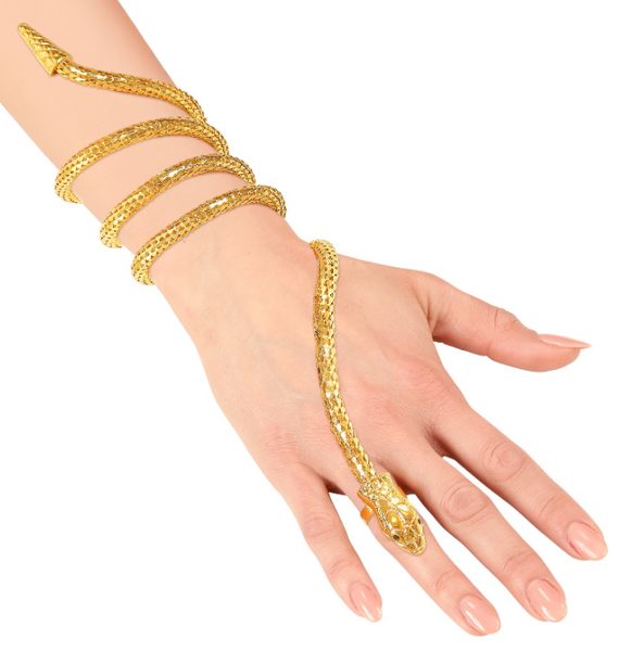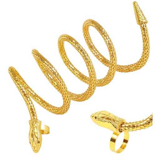 POPIS ZBOŽÍ prsten s hadím náramkem Kus 2 v 1 – prsten kombinovaný s náramkem, který vytváří tvar klikatého hada ovíjejícího ruku a zápěstí. Pozlacený povrch. Vyrobeno z kovu.