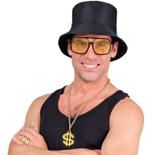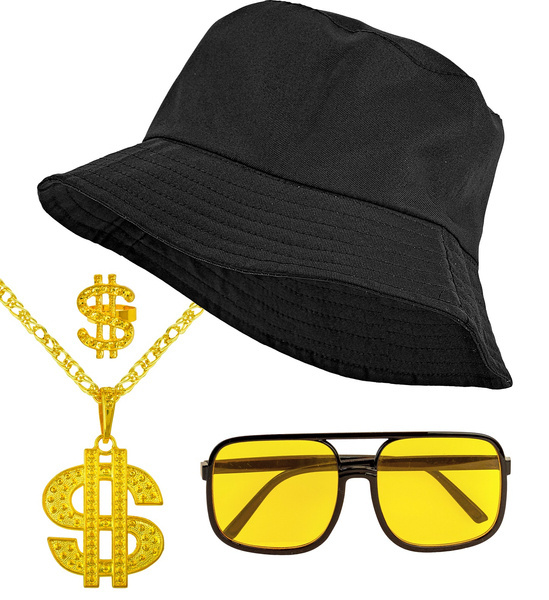 POPIS ZBOŽÍ set doplňků hip hop Hip hopová sada inspirovaná 90. léty. Sada obsahuje: černý klobouk, brýle, náhrdelníks dolarem a pečetní prsten.