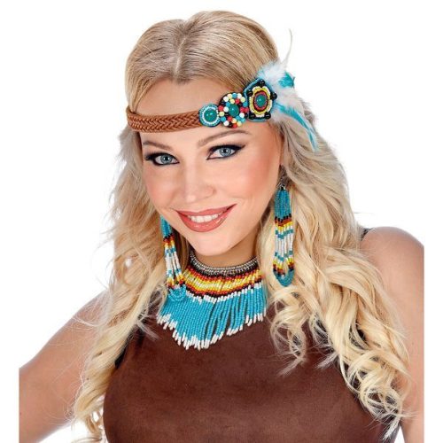 POPIS ZBOŽÍ set indiánka Sada obsahuje: čelenku z peří náušnice náhrdelník Hnědá čelenka má vzadu gumičku, zdobenou korálky v různých barvách. Náušnice a náhrdelník jsou vyrobeny z malých korálků.