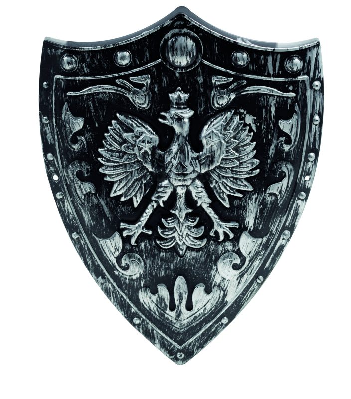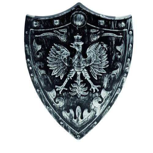 modrým drahokamem, a štít. Tento je zdoben reliéfem orla a