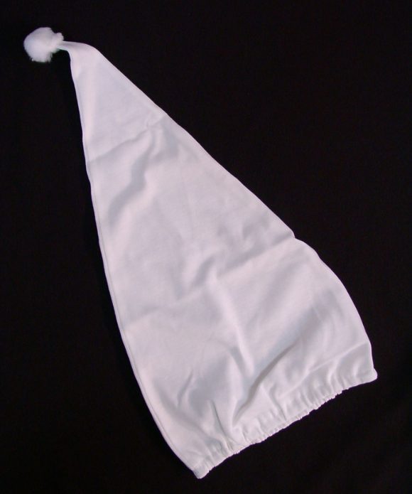 POPIS ZBOŽÍ čepice na spaní Špičatá čepice z obzvláště měkké žerzejové látky s bílou bambulkou. Délka cca 50 cm. Díky pružné látce a elastickému lemu se čepice přizpůsobí téměř každé velikosti hlavy.