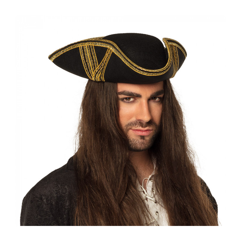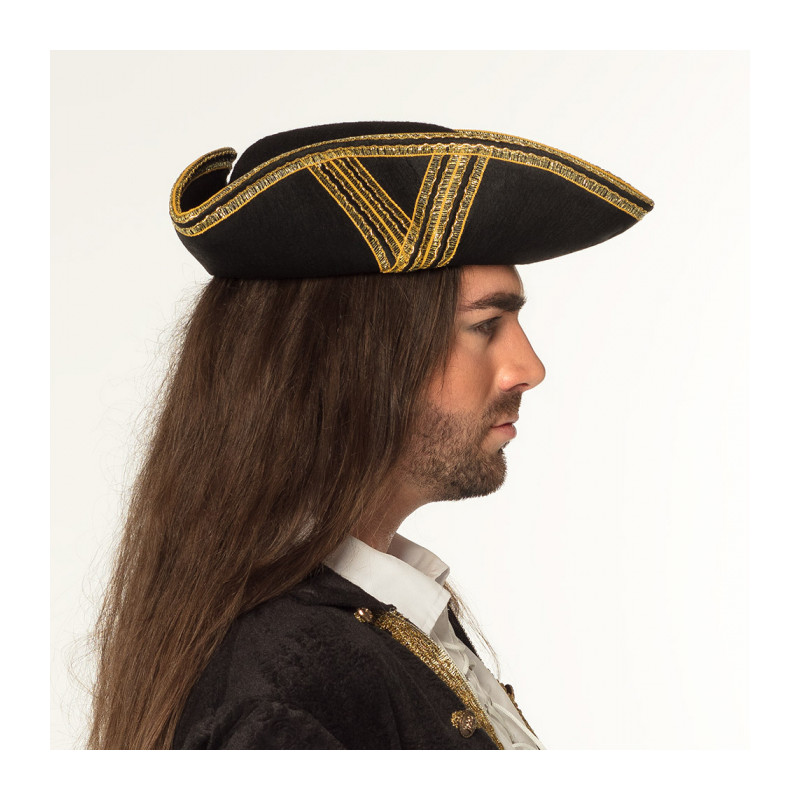POPIS ZBOŽÍ třírohý klobouk se zlatým lemem Plstěný klobouk třírohák vhodný jako doplněk k různým historickým kostýmům, piráta, admirála..... obvod 59cm