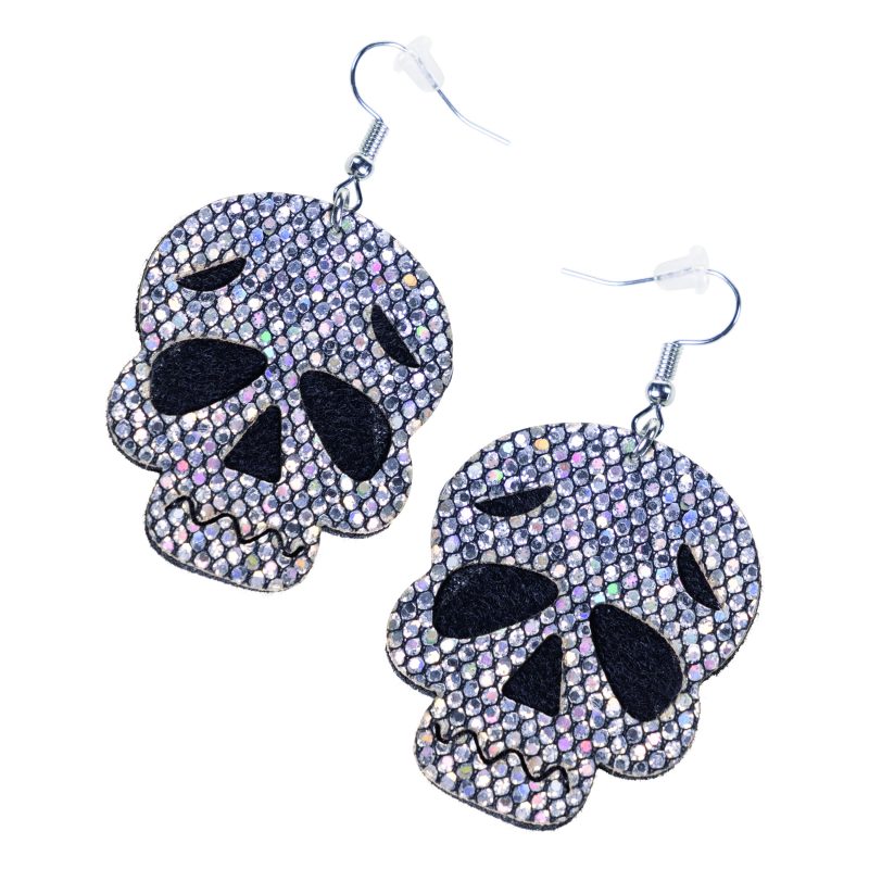 POPIS ZBOŽÍ třpytivé náušnice lebka Tyto stříbrné, třpytivé náušnice s lebkou doplní váš halloweenský outfit!